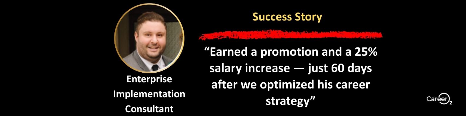 Found work in two weeks. A year later, worked with Career Oxygen, and promoted to a six figure role!